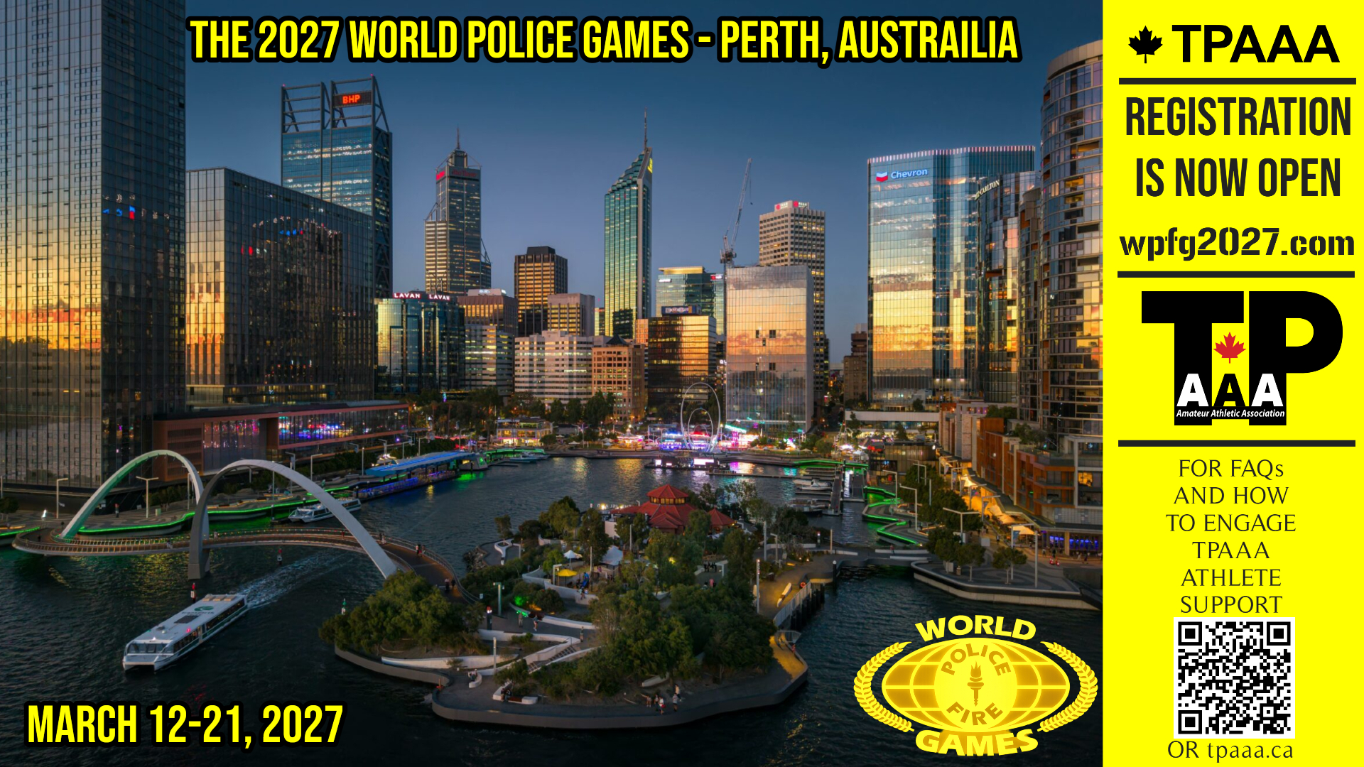 Thanks for your interest in the WORLD POLICE AND FIRE GAMES, scheduled for PERTH, AUSTRAILIA, 2027.